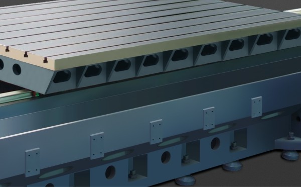 • 機床底座、工作臺、立柱、橫梁、滑鞍、主軸箱采用樹脂砂造型HT300強度孕育鑄鐵,經二次退火處理,完全消除鑄造應力及粗加工產生的內應力,確保結構高剛性、高穩(wěn)定定性,確保品質。